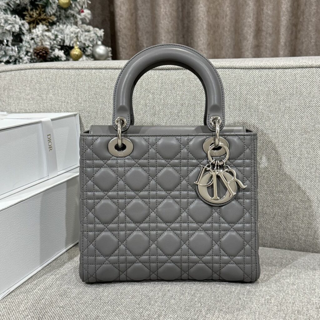 디올 레이디백 아이언그레이 M 사이즈 실버