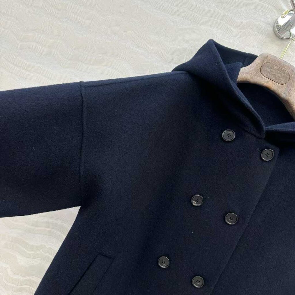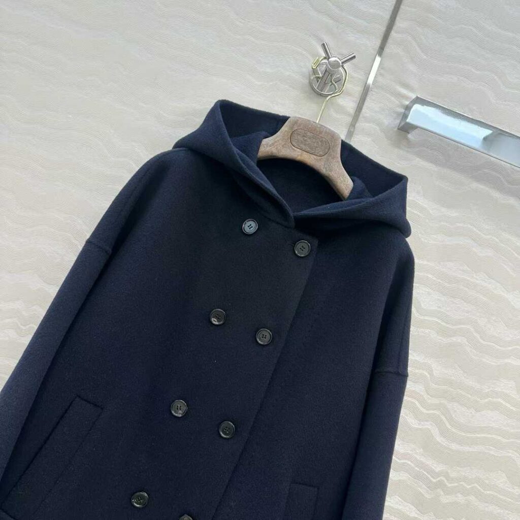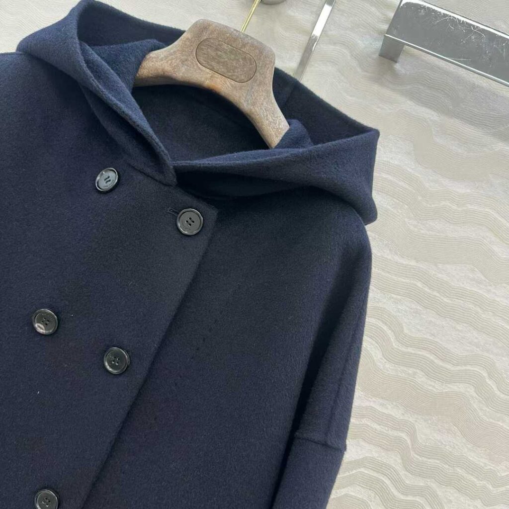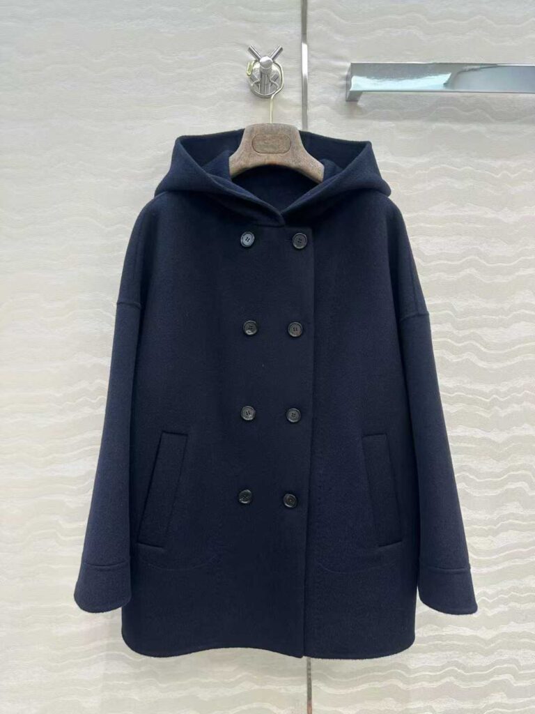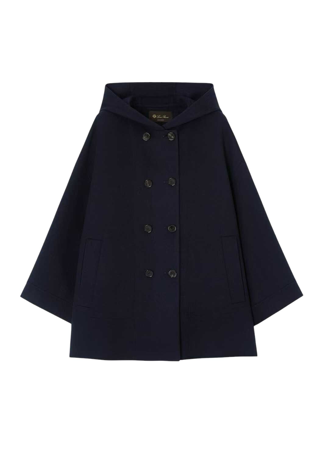 로로피아나 후드 캐시미어 더블 코트 네이비
