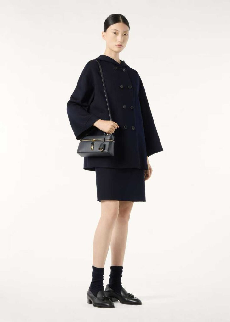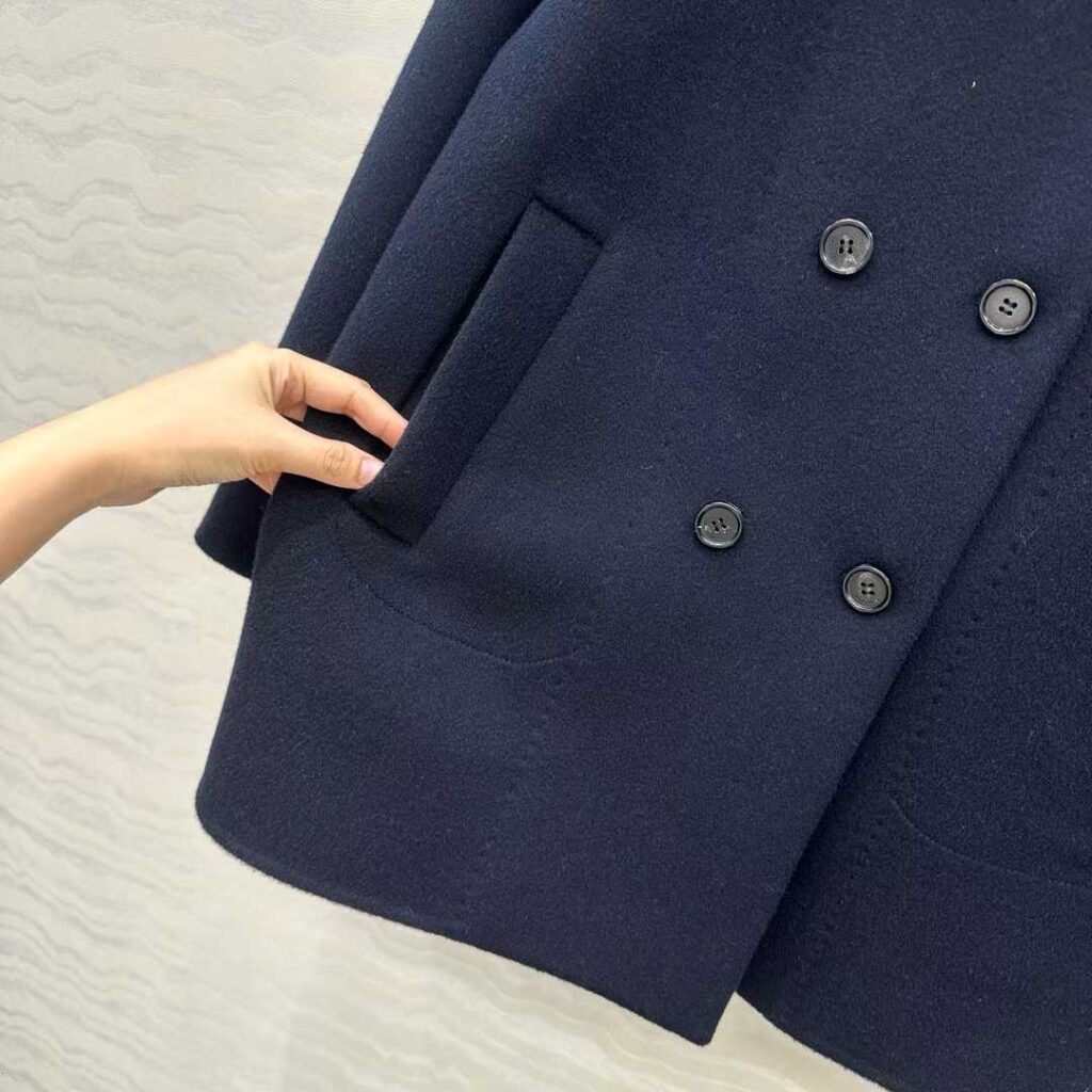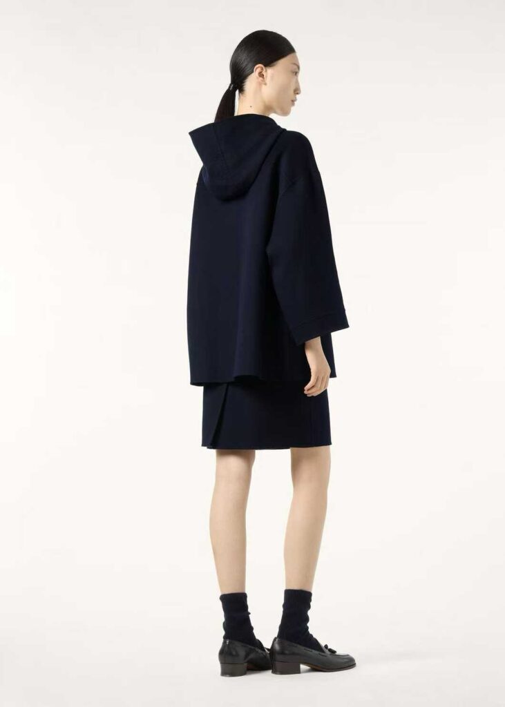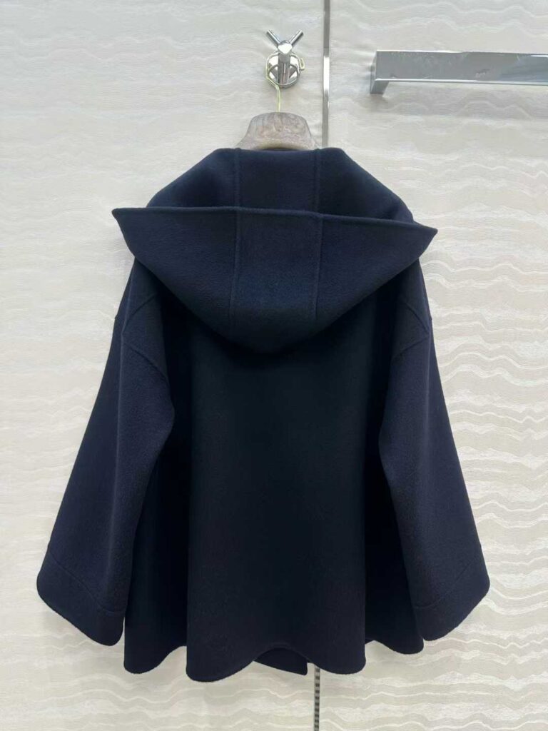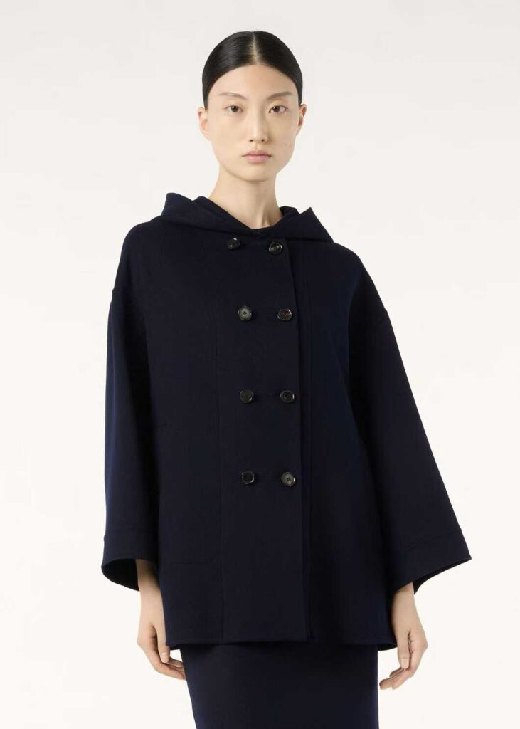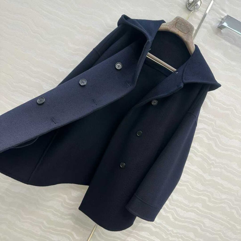 로로피아나 후드 캐시미어 더블 코트 네이비