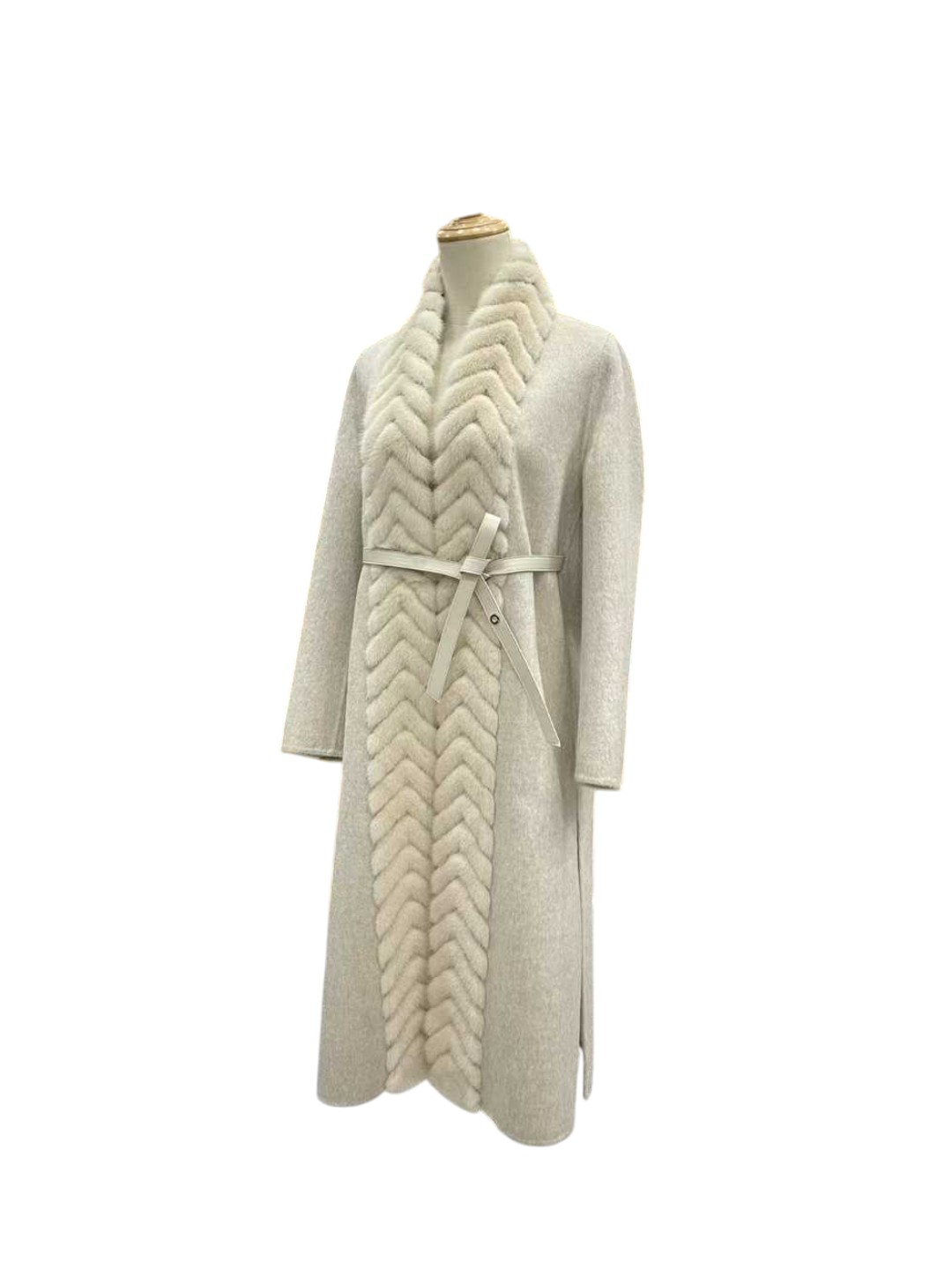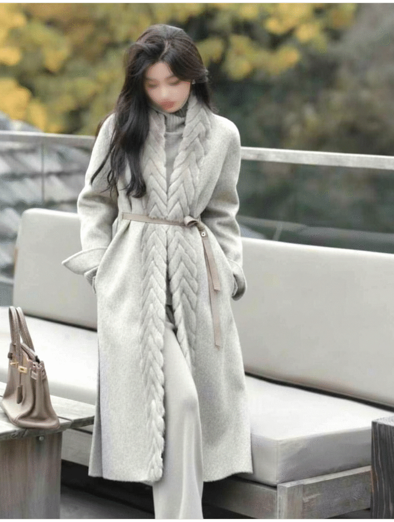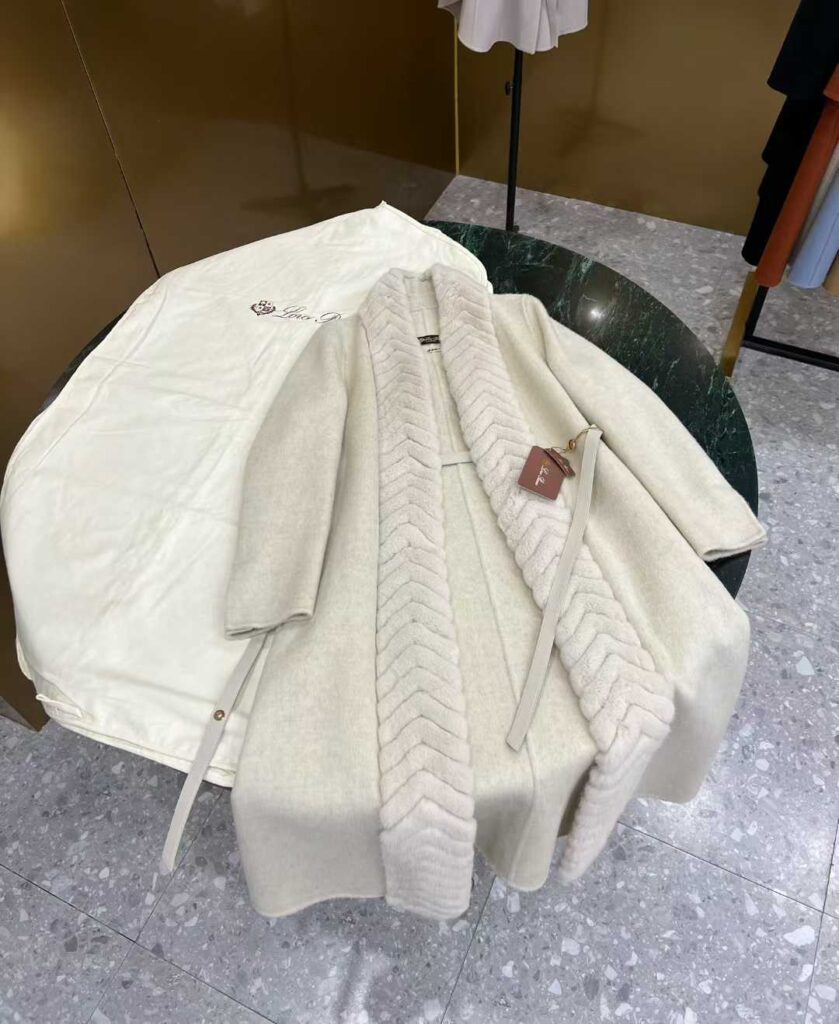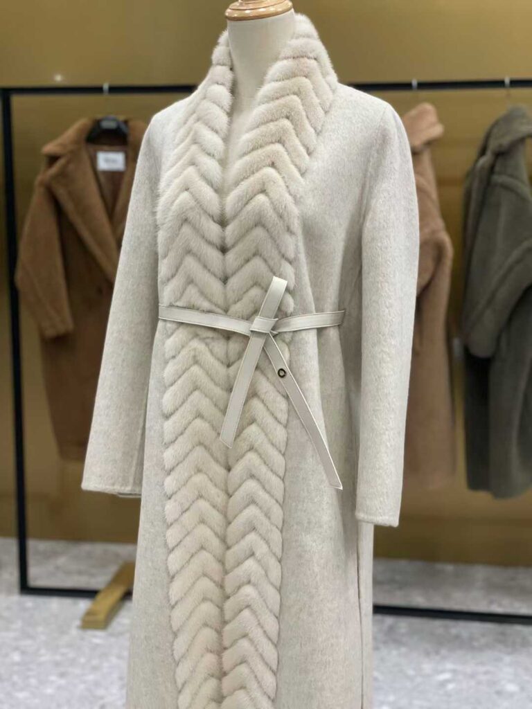 로로피아나 헤링본 밍크 벨티드 코트
