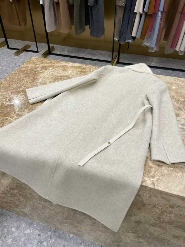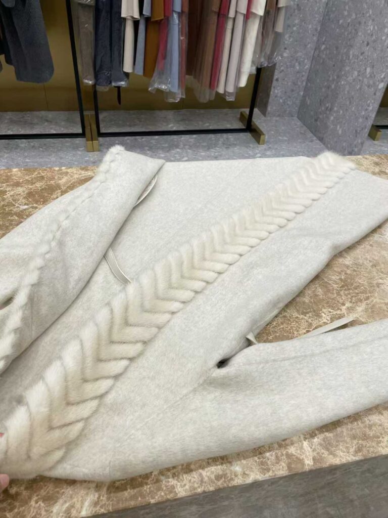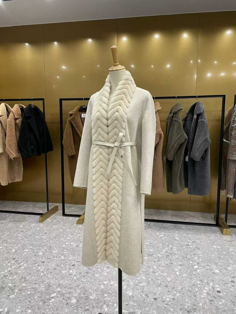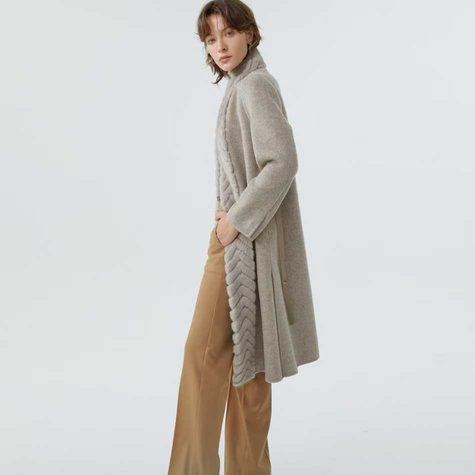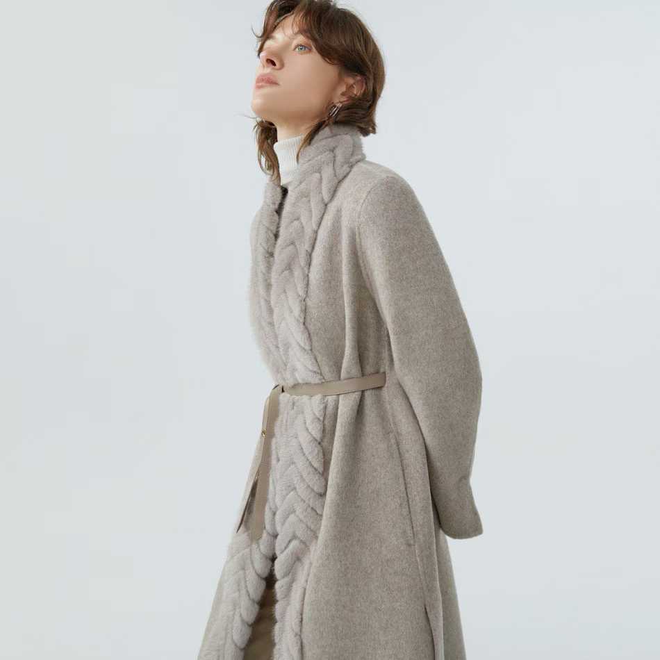 로로피아나 헤링본 밍크 벨티드 코트