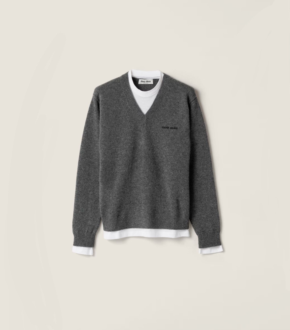 Cotton jersey inserts at the neckline, cuffs, and hem