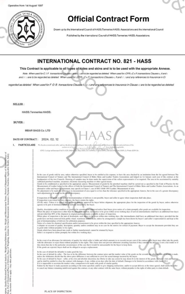 (HASS) 에르메스 정품 동일 가죽 공급 계약 체결서 / Leather Supply Agreement Form