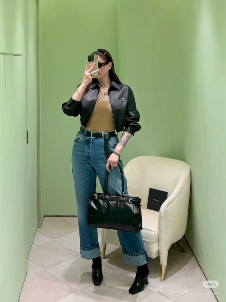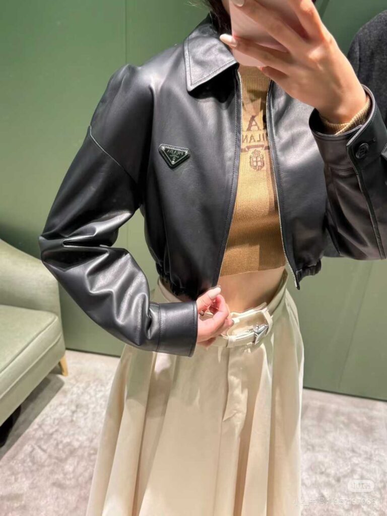 프라다 밴딩 숏 래더 자켓