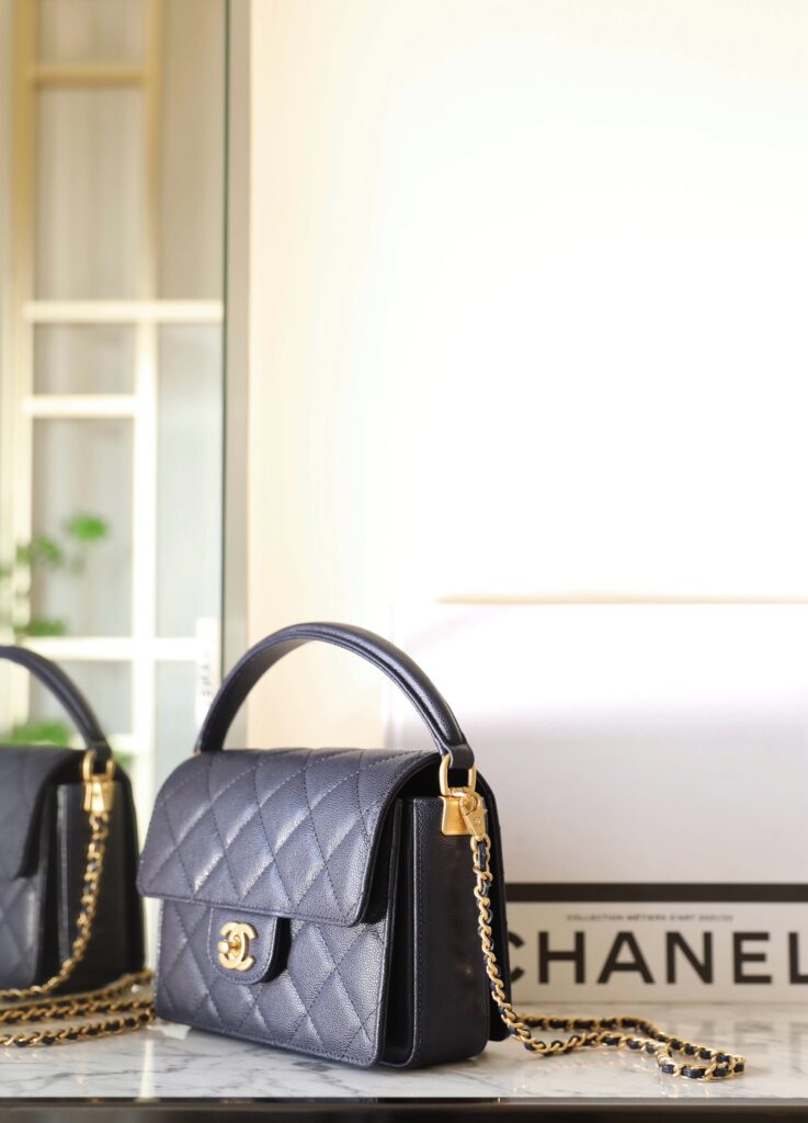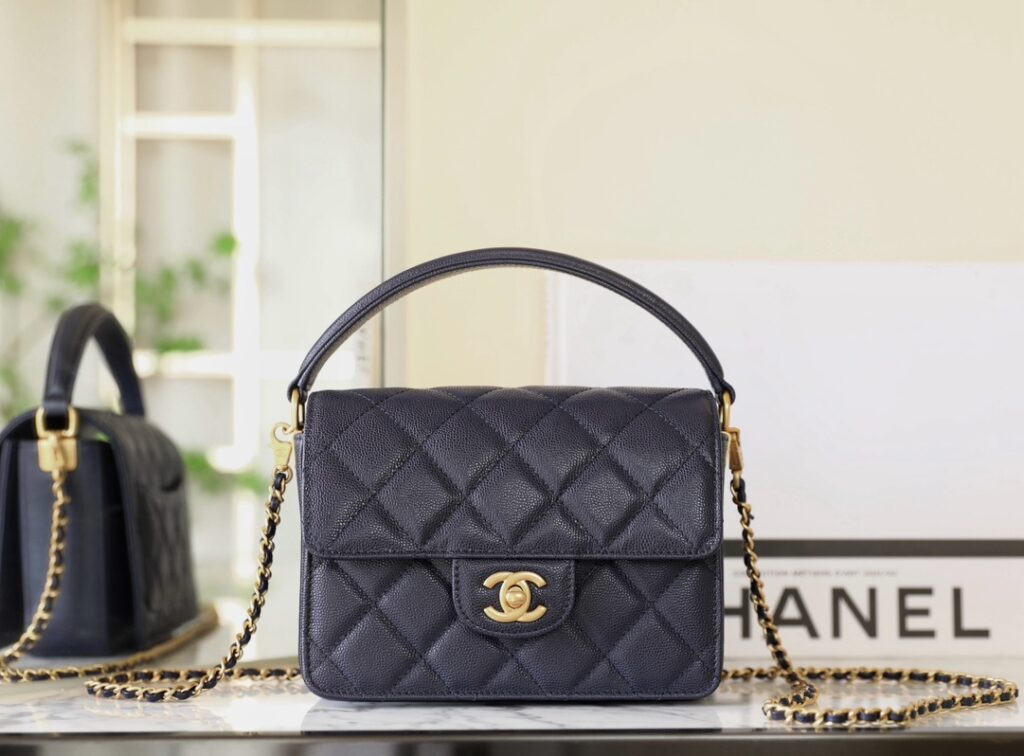25fw 샤넬 탑핸들 플랩백 네이비 M